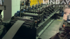 This step beam roll forming machine has 5 sections. At the beginning, it is equipped with a 3 ton manual uncoiler. The manual uncoiler is economical and save space. Its feeding width is 300mm. The raw material of the coil should be A-36(Q235) and its normal thickness is around 2mm. Since the material is thicker, the yield strength is 235Mpa. This whole production line weighs almost 30 tons. The section of the roll former we use a 110 cast iron structure which is more stable. There are 32 stands in the forming station and we provide a 30kw motor. The speed of the production line is around 6m/min. The driving system is gear-box drive which will be more fast. The machine uses a saw cutting method. In the end of this production line, there is an out table.